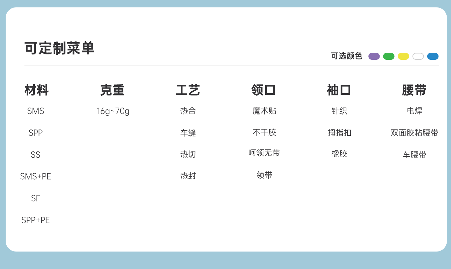工藝:聚丙烯+聚乙烯